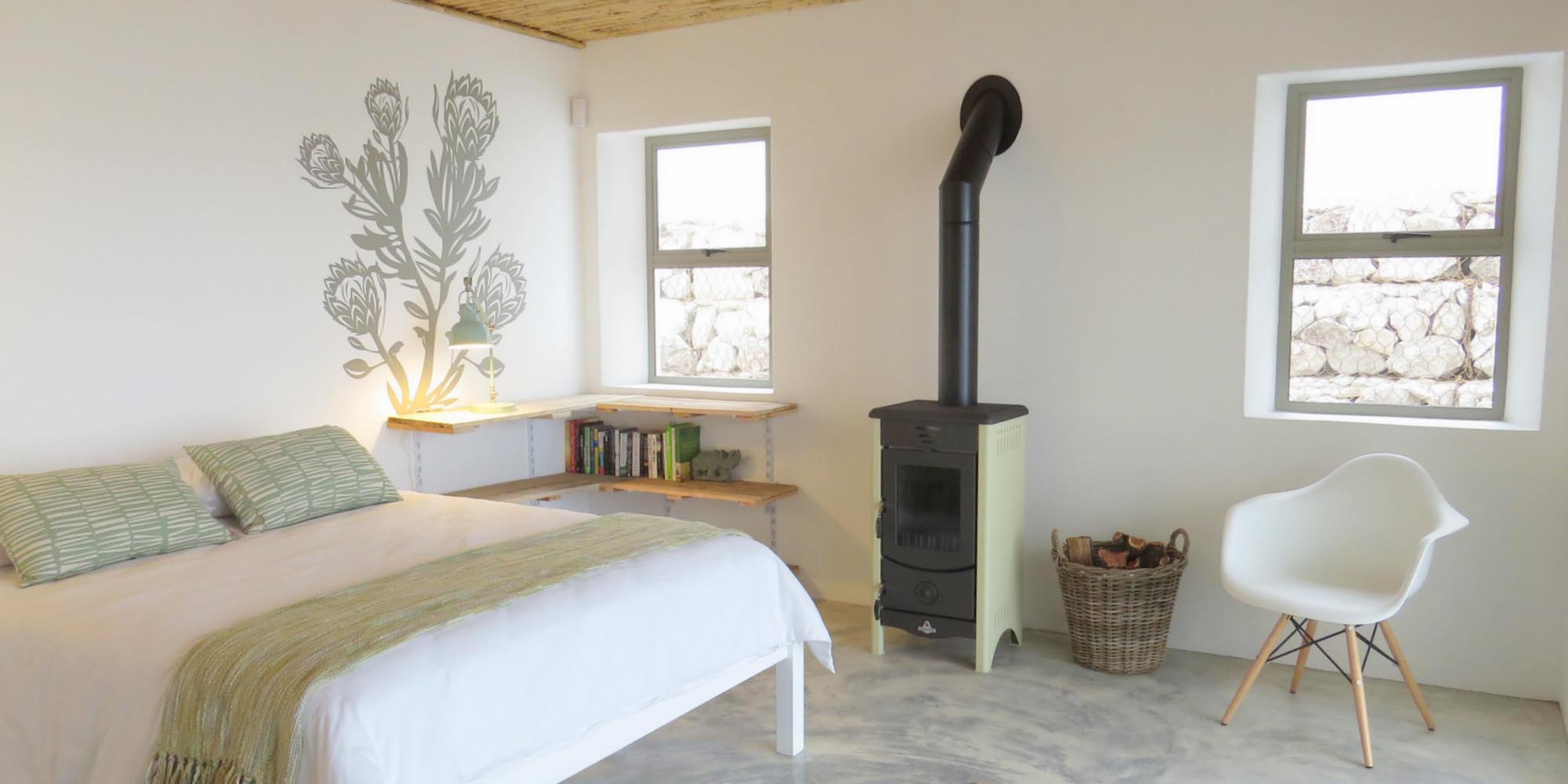 Second of two bedrooms; on the lower level and en-suite. Access to the garden through double glass doors to the right. Stunning views from bed.